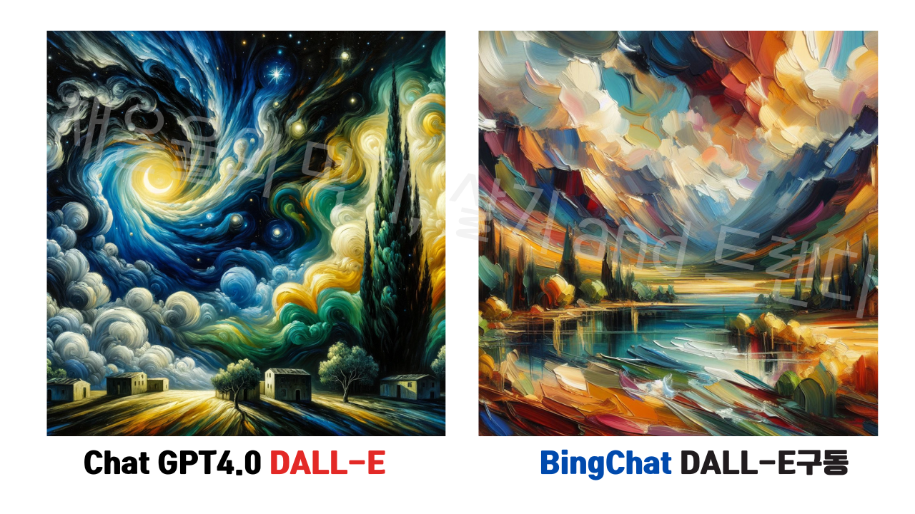 그나마 원작과 가장 비슷한 분위기의 유화 붓터치느낌을 내준건 미드저니가 아니었나 생각되는데 어떠신가요? 챗GPT 4.0의 DALL-E도 마을 분위기를 잘 살려주었다고 생각해요~